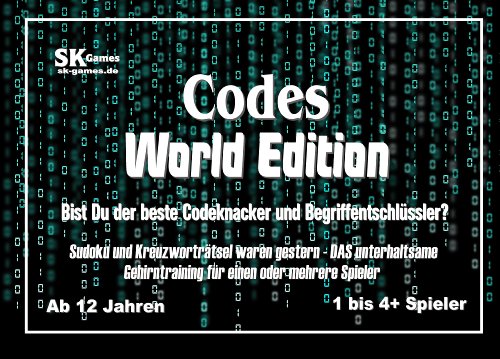 Die „World Edition“ ist für Spieler ab 12 Jahren. Die Kategorien sind unterteilt in Millionenstadt, Land und Fluss. Nutzen Sie Ihre Kreativität, logisches Denken, Allgemeinwissen und Schnelligkeit, um Ihre Freunde und Bekannte im geistigen Wettstreit zu besiegen. Das Ziel von „Codes“ ist die Entschlüsselung von unterschiedlichen Begriffen. Jedes Wort hat eine andere Codierung, z. B.…